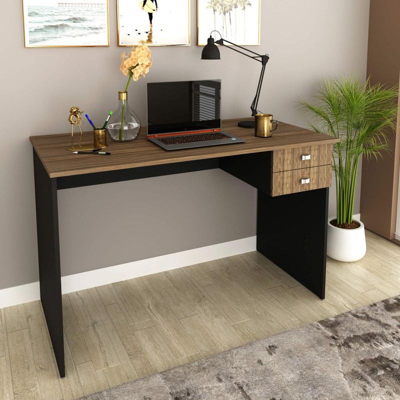 Casa e DecoraçãoMóveisMesaMesa para Escritório 117cm com 2 Gavetas ME4165 Nogal/Preto Tecnomobili