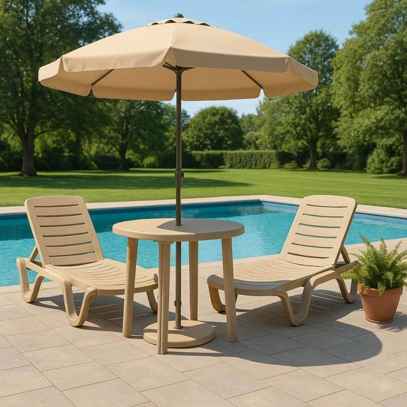 Mesa Plástica Desmontável Areia Tramontina Cassino Guarda-Sol Jardim Quiosque REF: 7908538121477