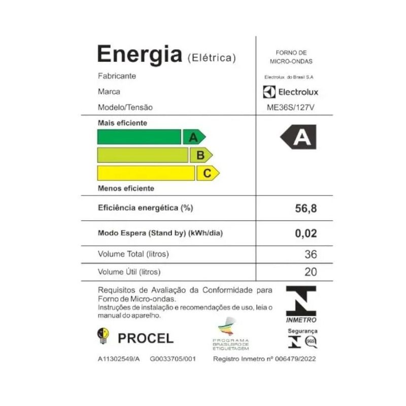 Micro-ondas Electrolux Efficient 36L PrataPreto ME36S REF: 679078_Sicredi