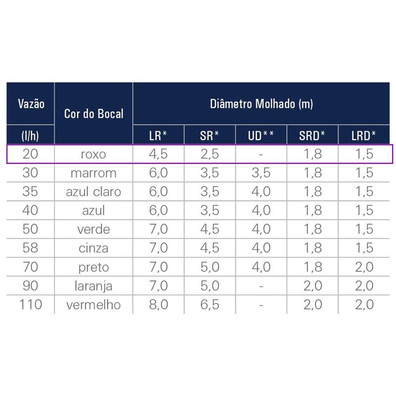 AgroEquipamentos AgrícolasIrrigaçãoMicroaspersor Supernet 20 L/H LR 60 cm Dentado - 10 Unidades
