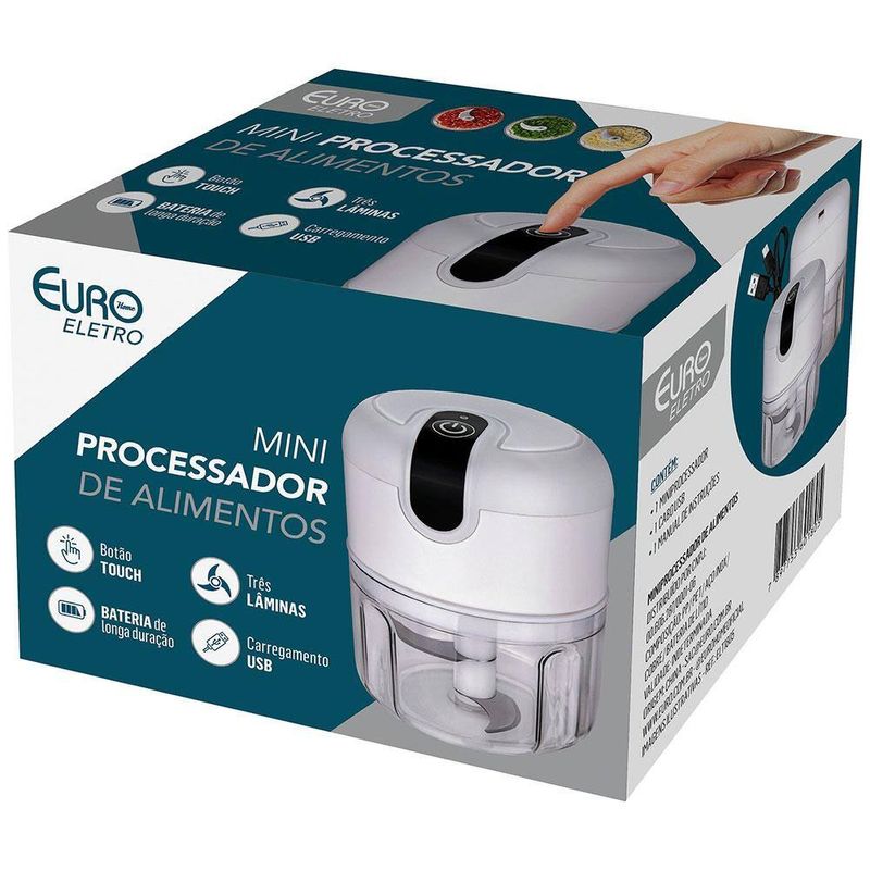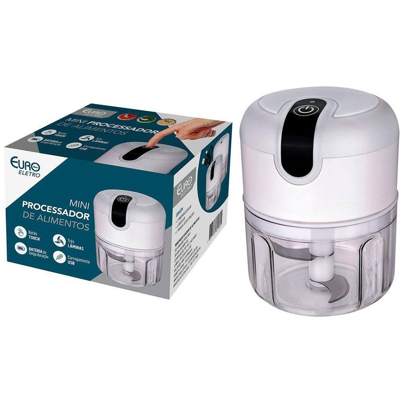 Mini Processador de Alimentos Euro 3 Lâminas Cabo USB - Branco REF: 7897753601805