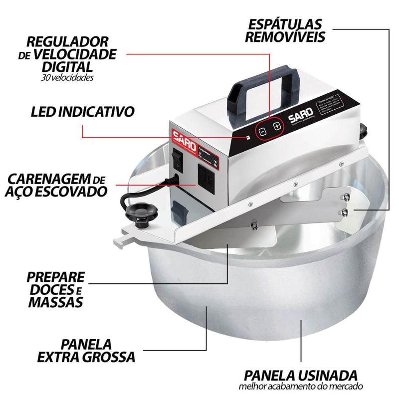 EletroportáteisPanela elétricaMisturador Elétrico Automático para Doces e Salgados 10 Litros Bivolt Inox Saro