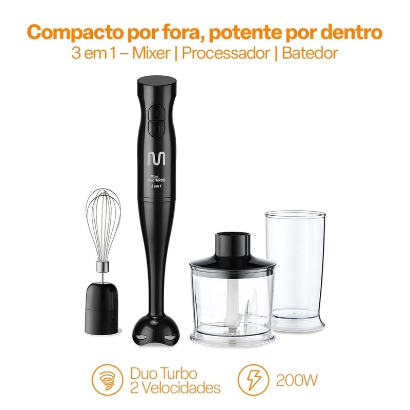Mixer Duo Turbo 3 em 1 127V 200W Preto Multi Home - GO019 GO019 REF: 7908842854177