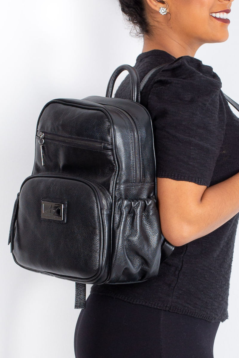 Mochila pequena de couro liso grafite Zoey REF: 7899948636340