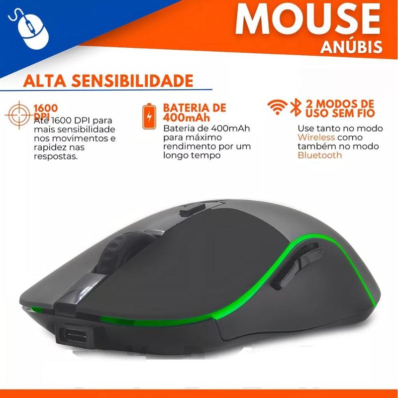 Mouse Gamer Sem Fio Wireless Usb Bluetooth 1600 Dpi Led RGB Cor Preto/Cinza REF: 567858_Sicredi