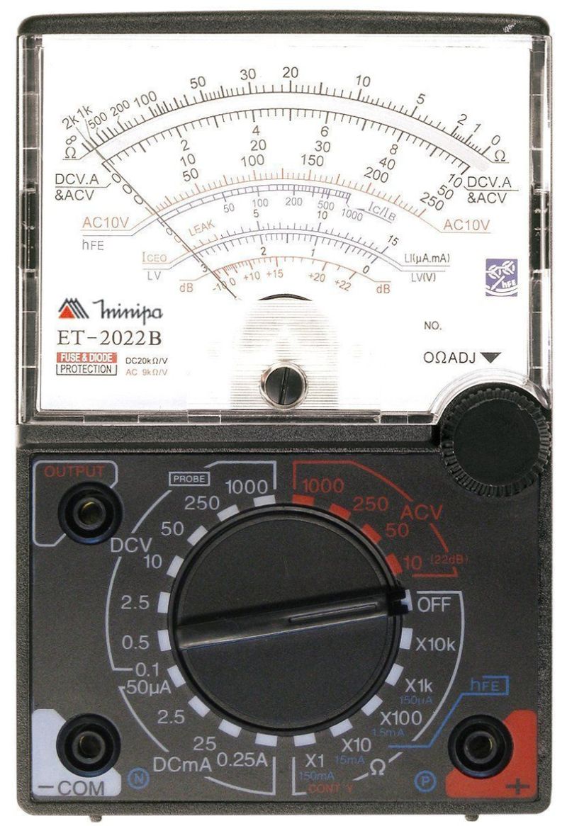 Multímetro Analógico 300V-1000V Ac/Dc Teste Diodo/Transistor ET-2022B Minipa REF: 722899_Sicredi