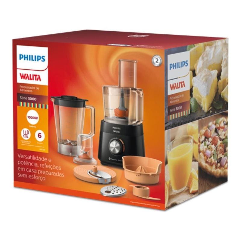 Multiprocessador de Alimentos Philips Walita S100 PC HR7304/90 1000W 2 Velocidades Liquidificador 2L Preto REF: 8720389031861