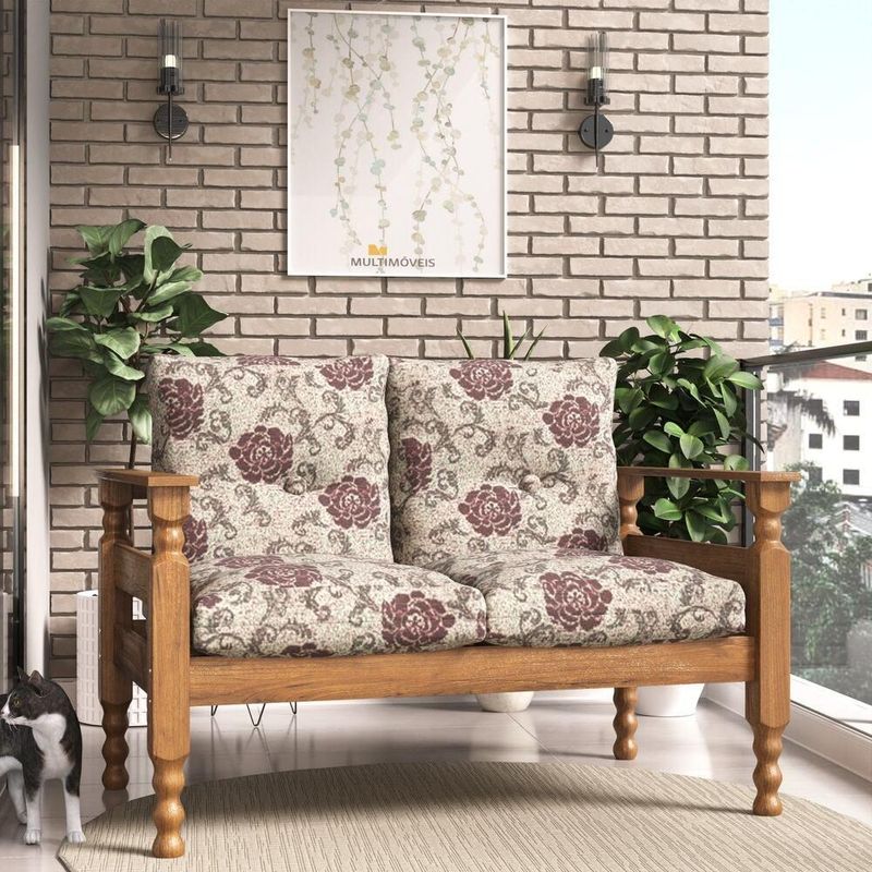 Casa e DecoraçãoMóveisSofáNamoradeira 2 Lugares Madeira Maciça Liz Multimóveis CR7002.T65 Imbuia/Floral
