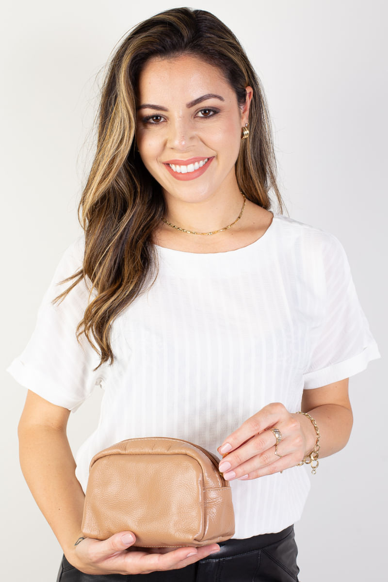 Necessaire de couro liso Dara 14x18x9cm REF: 7908660128405
