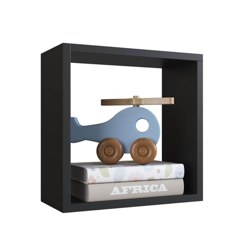 Nicho Infantil Organizador Multiuso Pequeno Quadrado Preto MDP Brinquedos Decoração REF: 7899766515728
