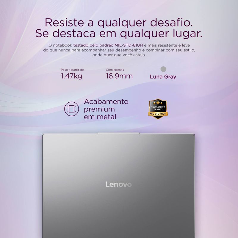 Eletrônicos e TecnologiaInformáticaNotebooksNotebook Lenovo 14 Ideapad Slim 5 83NJ0002BR Windows 11 Copilot+ PC AMD Ryzen AI 5 330 16GB RAM e 512GB SSD Luna Gray