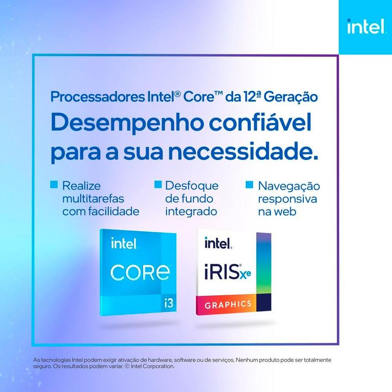 Notebook Lenovo IdeaPad 1 Intel Core i i3-1215U 4GB 256GB SSD Tela 15.6" Intel UHD Graphics Windows 11 Câmera 720p com privacidade 82VY000TBR REF: 272281_Sicredi