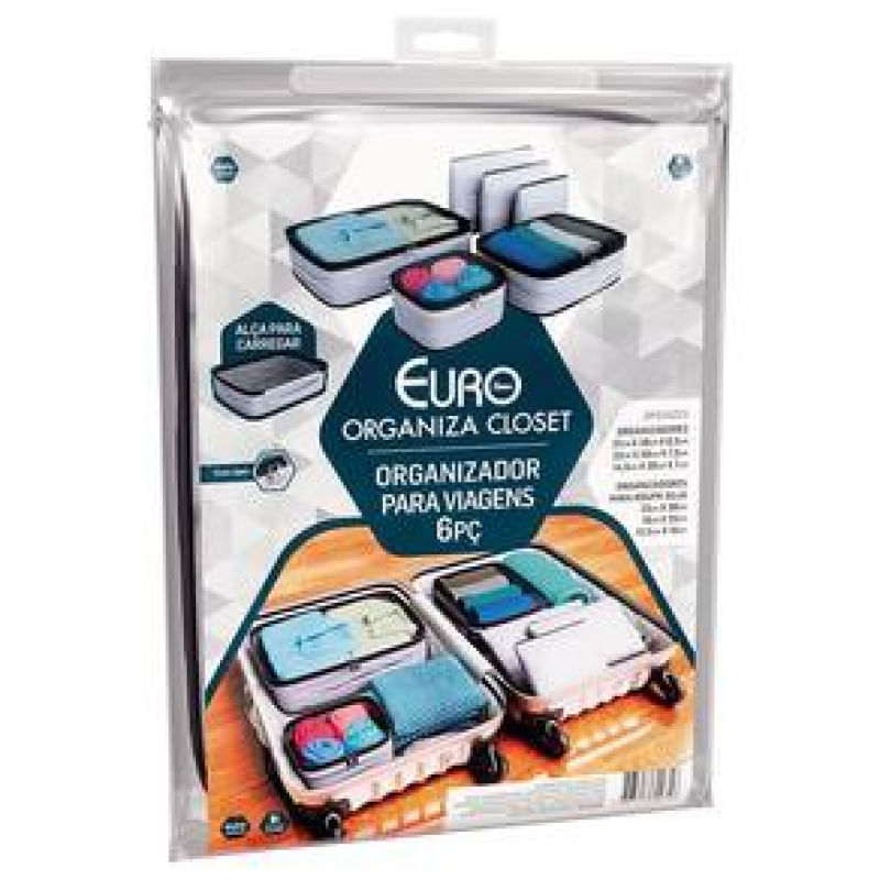 Organizador Euro Home para Viagens 6 Peças - Cinza REF: 7897753600716