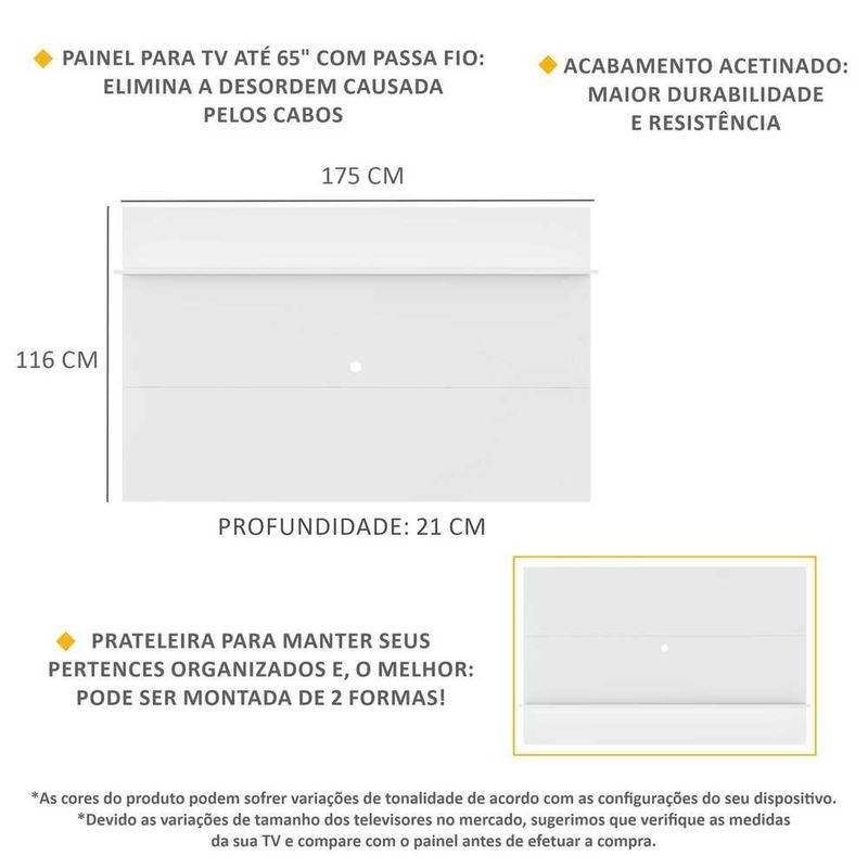 Painel com Prateleira para TV até 65" Multimóveis Amsterdã Plus FG3363 Branco REF: 577228_Sicredi