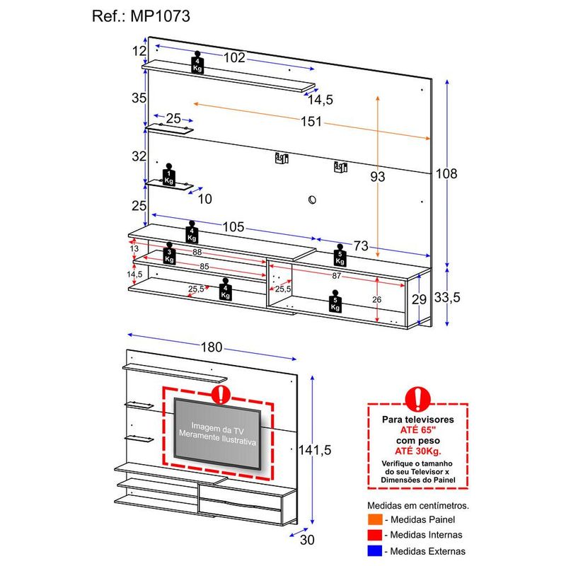 Painel com Suporte para TV até 65 Polegadas 1 Porta e Prateleiras Multimóveis MP1073 REF: 764225_Sicredi