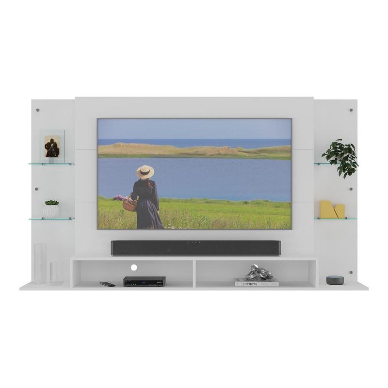 Painel TV 60" c/ Suporte e Prateleiras de Vidro Nairóbi Multimóveis Branco REF: 764508_Sicredi