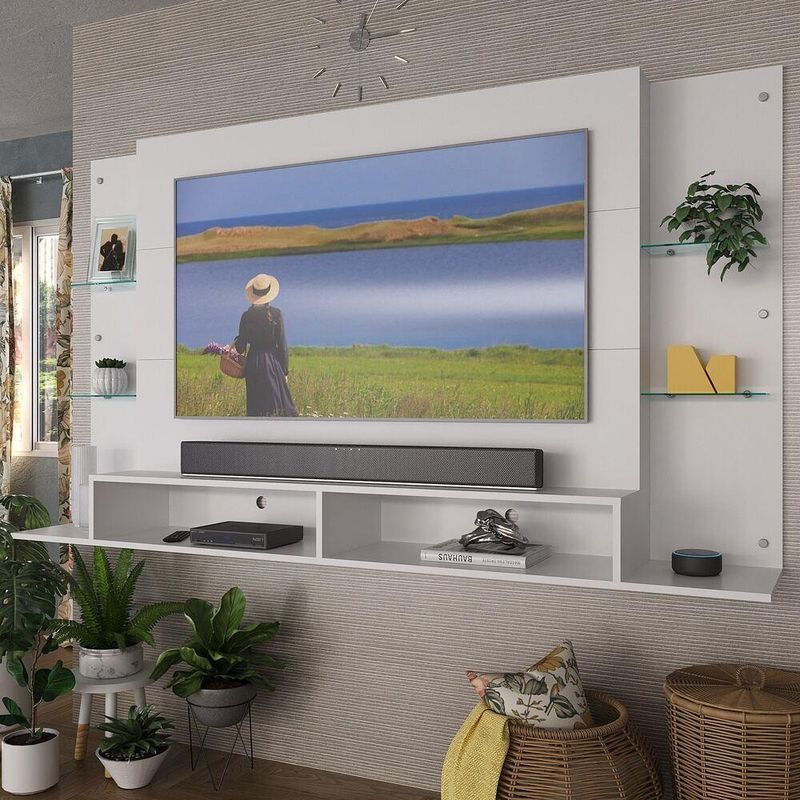 Casa e DecoraçãoMóveisRack e painel de TVPainel TV 60" c/ Suporte e Prateleiras de Vidro Nairóbi Multimóveis Branco