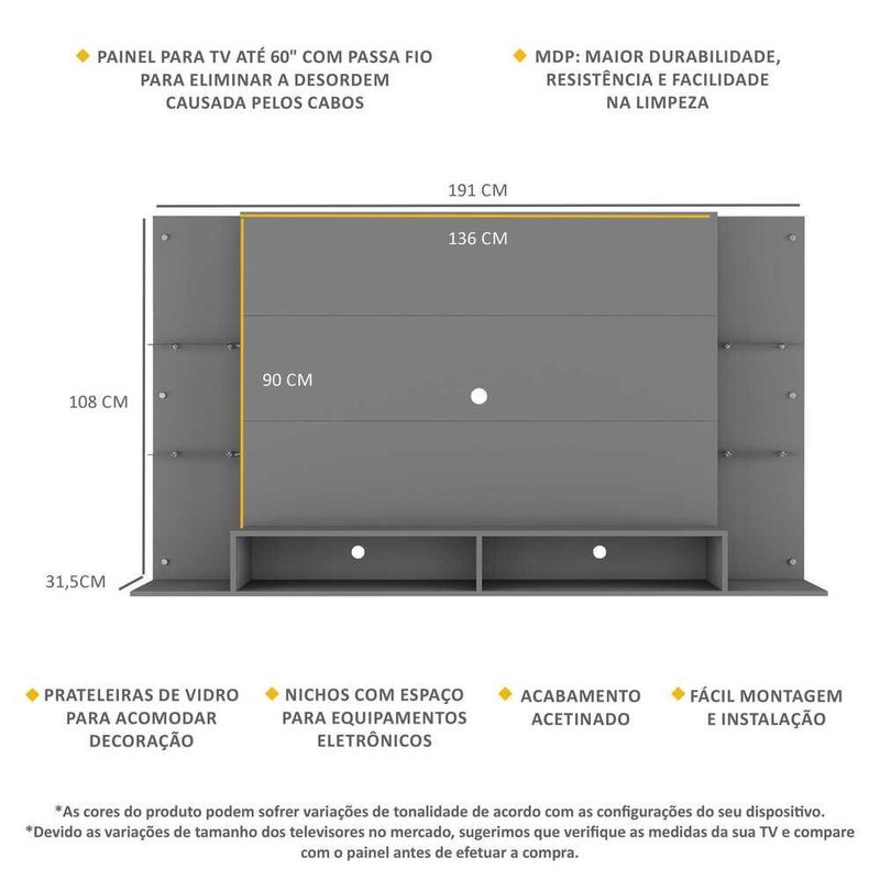 Painel TV 60" com Prateleiras de Vidro Brasil Multimóveis BR2739 Grafite REF: 577054_Sicredi