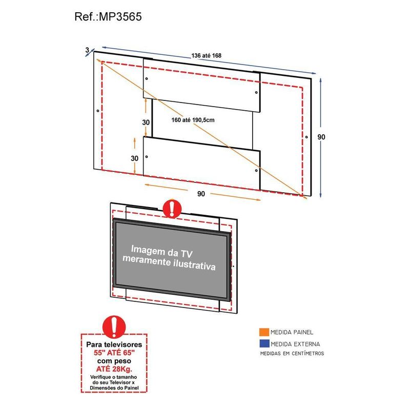 Painel TV 65" 2 em 1 Malta Multimóveis Branco/Madeirado REF: 764919_Sicredi
