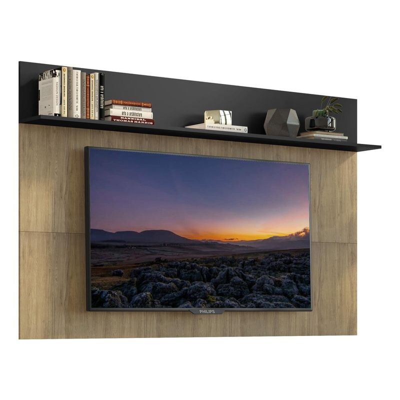 Casa e DecoraçãoMóveisRack e painel de TVPainel TV 65" c/ Prateleira Amsterdã Plus Multimóveis Rustic/Preto
