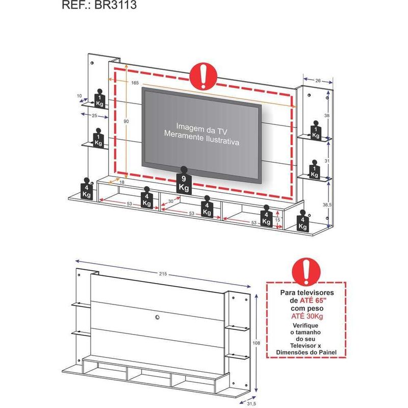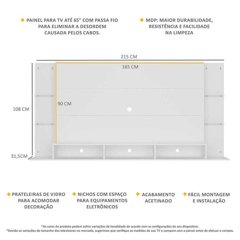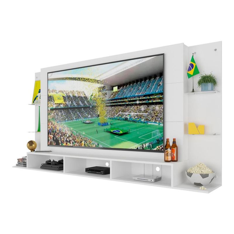 Painel TV 65" com Prateleiras de Vidro Brasil Plus Multimóveis BR3113 Branco REF: 578650_Sicredi