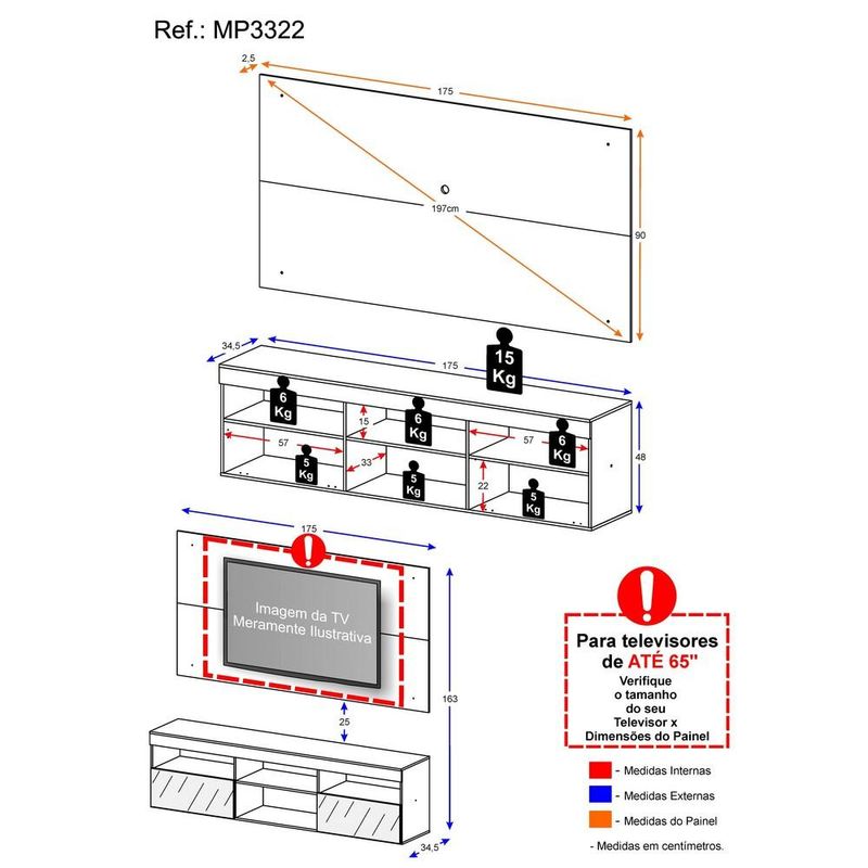 Painel TV até 65 polegadas com Rack Suspenso e Espelho Flórida Multimóveis Preto REF: 770429_Sicredi