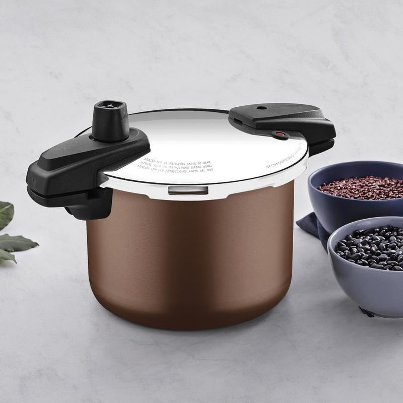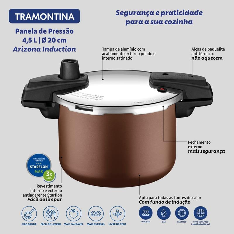 Casa e DecoraçãoUtilidades DomésticasAcessórios de CozinhaPanela de Pressão Tramontina Arizona Induction em Alumínio com Revestimento Antiaderente Mocaccino 20cm 4,5 Litros