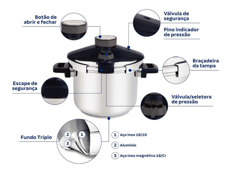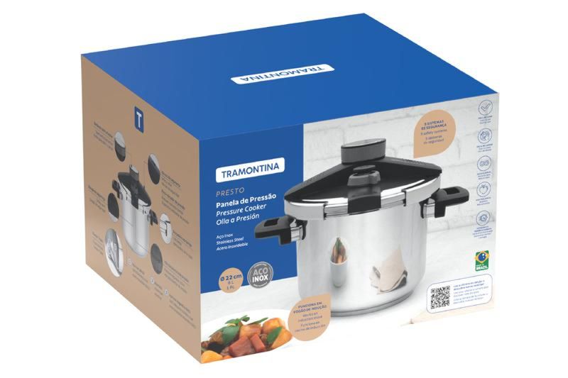 Panela de Pressão Tramontina Presto em Aço Inox 6 Litros 22cm REF: 7891116201947