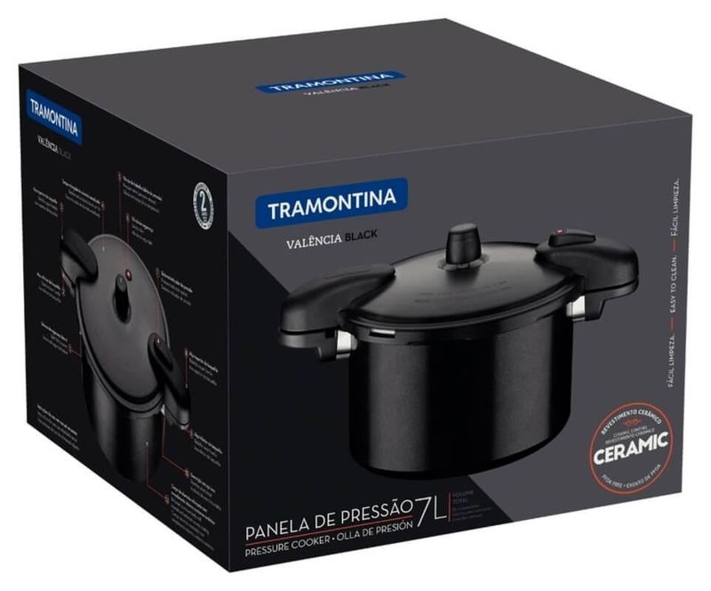 Panela de Pressão Tramontina Valência Black Cerâmica 24cm 7L REF: 7891112284364