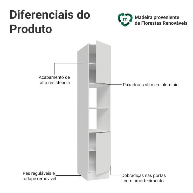 Casa e DecoraçãoMóveisArmário de CozinhaPaneleiro 40 cm 2 Portas e 2 Nichos Branco Stella Madesa