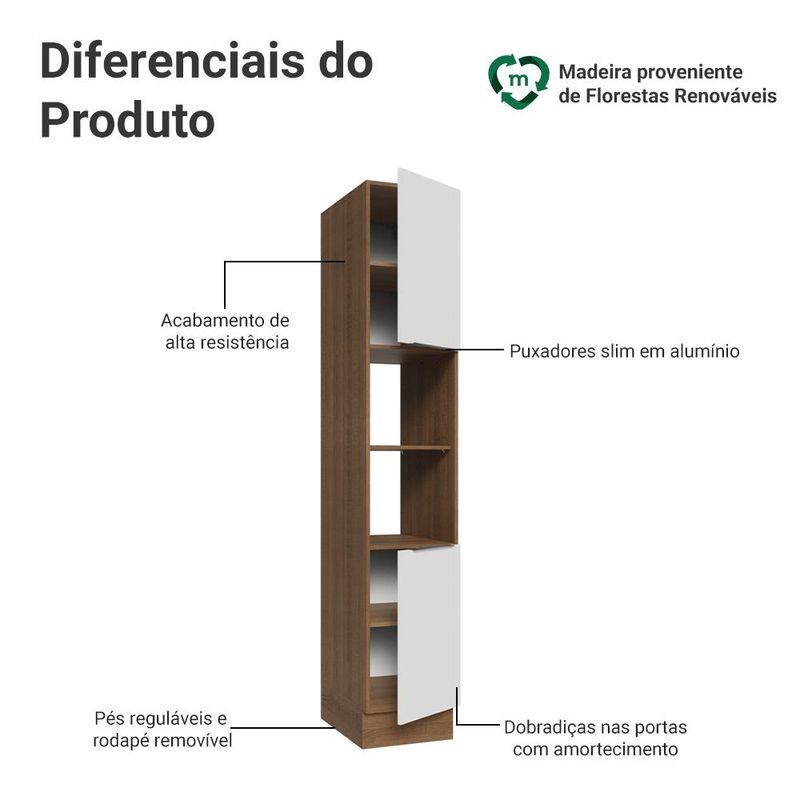 Casa e DecoraçãoMóveisArmário de CozinhaPaneleiro 40 cm 2 Portas e 2 Nichos Rustic/Branco Stella Madesa