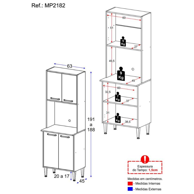 Paneleiro 63cm 4 Portas para Micro-ondas Siena Multimóveis MP2182 REF: 578938_Sicredi