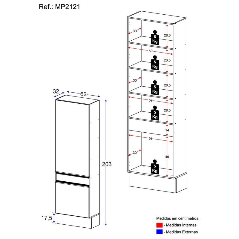Casa e DecoraçãoMóveisArmário de CozinhaPaneleiro com Rodapé 2 Portas Veneza Multimóveis MP2121.898 Preto/Branco