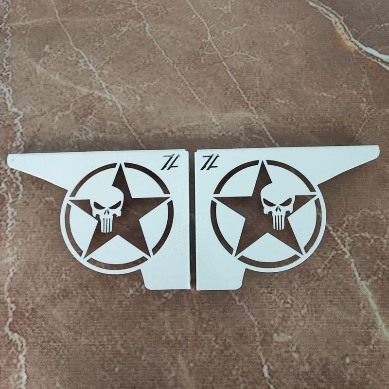 Par Mãos Francesas Brancas Ornamentadas 20cm 4x4 Estrela Caveira Justiceiro Aço Jeep REF: 7898741521075
