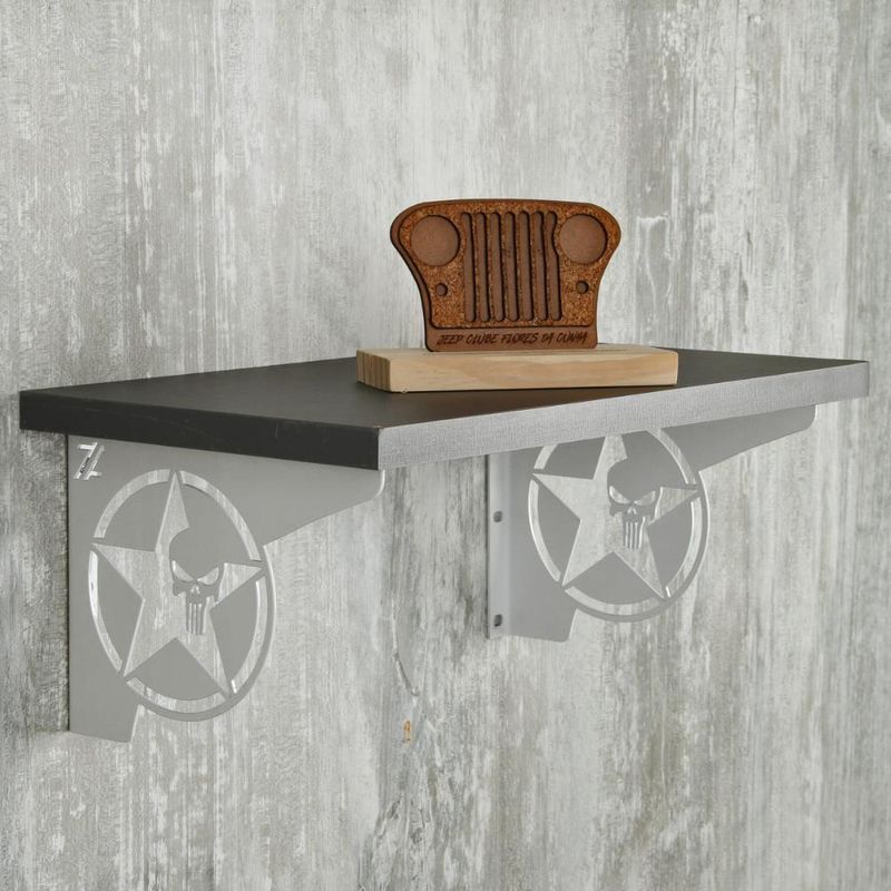 Casa e DecoraçãoMóveisNicho e prateleiraPar Mãos Francesas Brancas Ornamentadas 20cm 4x4 Estrela Caveira Justiceiro Aço Jeep