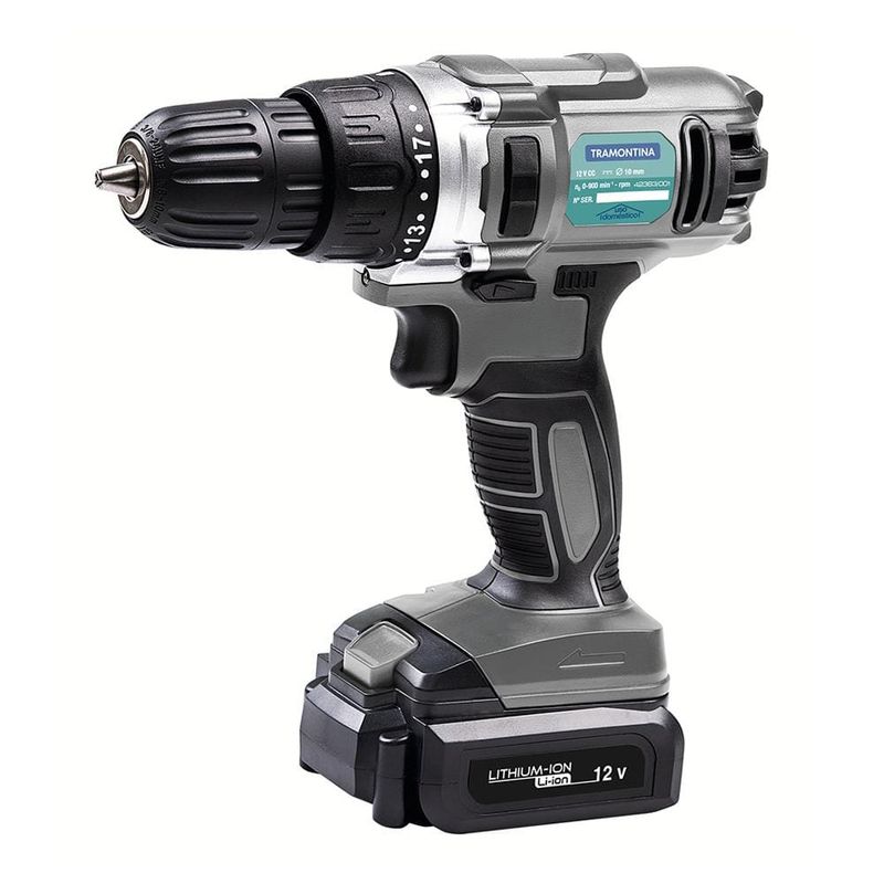 Ferramentas e ConstruçãoFerramentasFerramentas elétricasParafusadeira Furadeira Tramontina com Maleta e Bateria 12V - 16 Peças