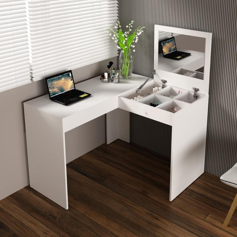 Penteadeira/Escrivaninha de Canto 110cm com Espelho Multimóveis CR25280 REF: 623473_Sicredi