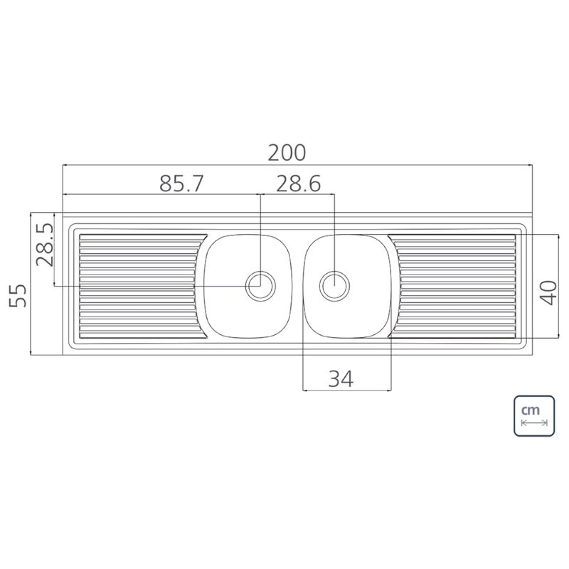 Pia de Apoio Tramontina Ribon 2C 34 em Aço Inox 200 x 55 cm REF: 7894693749673