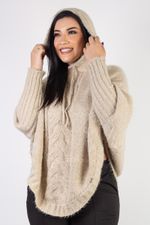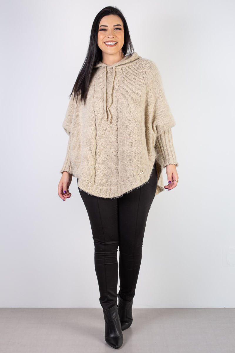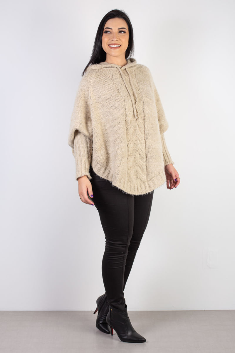 Poncho feminino de malha com trança 60012 REF: 7908660110165