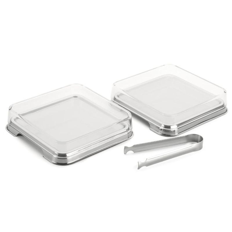 Porta Frios Inox Empilháveis Pegador de Fatiados Quadrado Pote Queijo e Presunto REF: 7896580616006