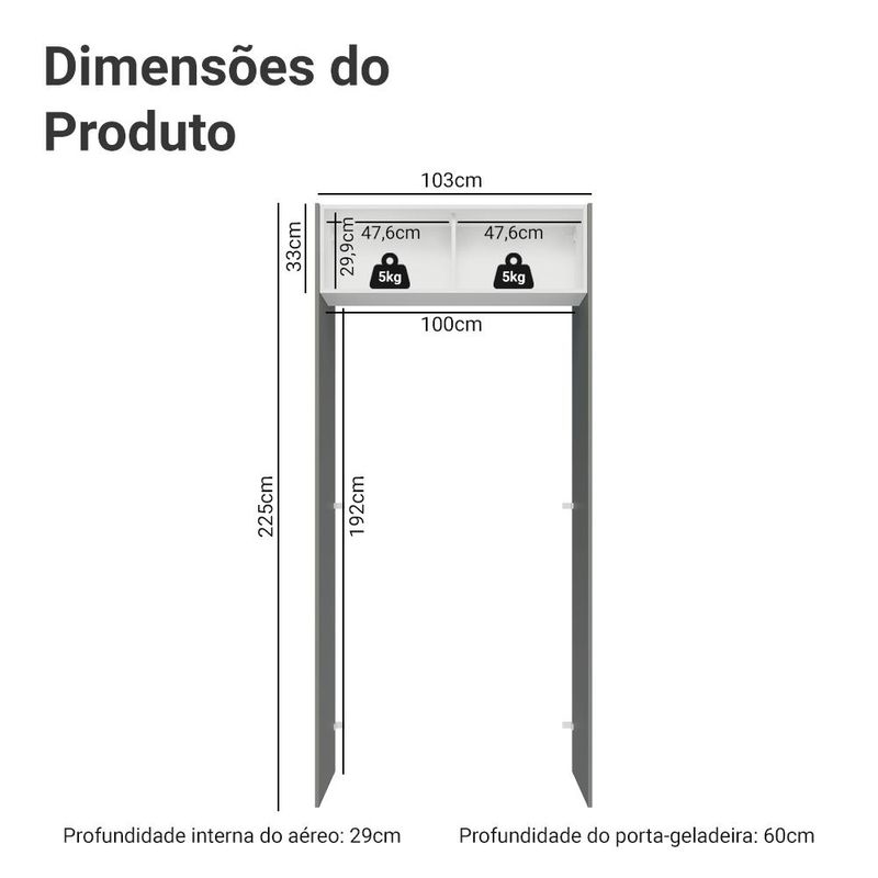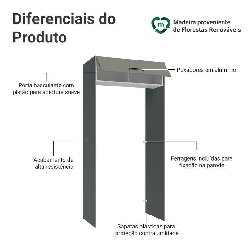 Casa e DecoraçãoMóveisArmário de CozinhaPorta-Geladeira 103 cm 1 Porta Basculante Cinza/Branco/Cinza Agata Madesa