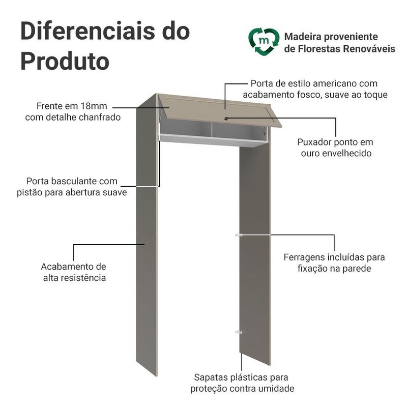 Casa e DecoraçãoMóveisArmário de CozinhaPorta-Geladeira 103 cm 1 Porta Basculante Crema/Branco/Crema Vik Madesa