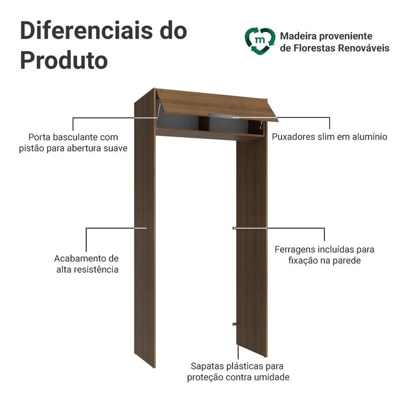 Casa e DecoraçãoMóveisArmário de CozinhaPorta-Geladeira 103 cm 1 Porta Basculante Rustic Stella Madesa
