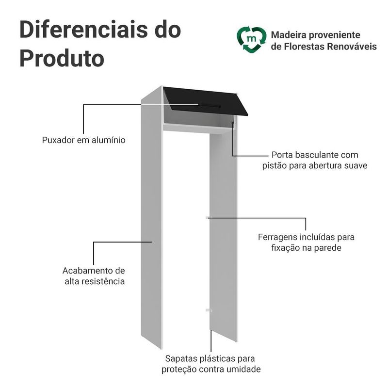 Casa e DecoraçãoMóveisArmário de CozinhaPorta-Geladeira 73 cm 1 Porta Basculante Branco/Preto Agata Madesa