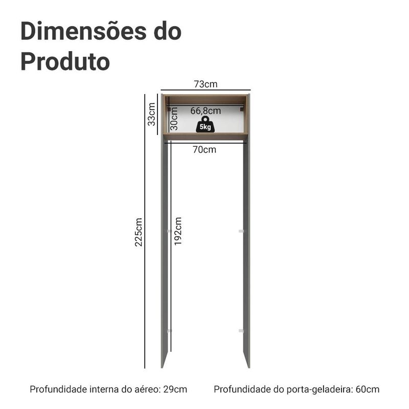 Casa e DecoraçãoMóveisArmário de CozinhaPorta-Geladeira 73 cm 1 Porta Basculante Cinza/Rustic/Cinza Lux Madesa