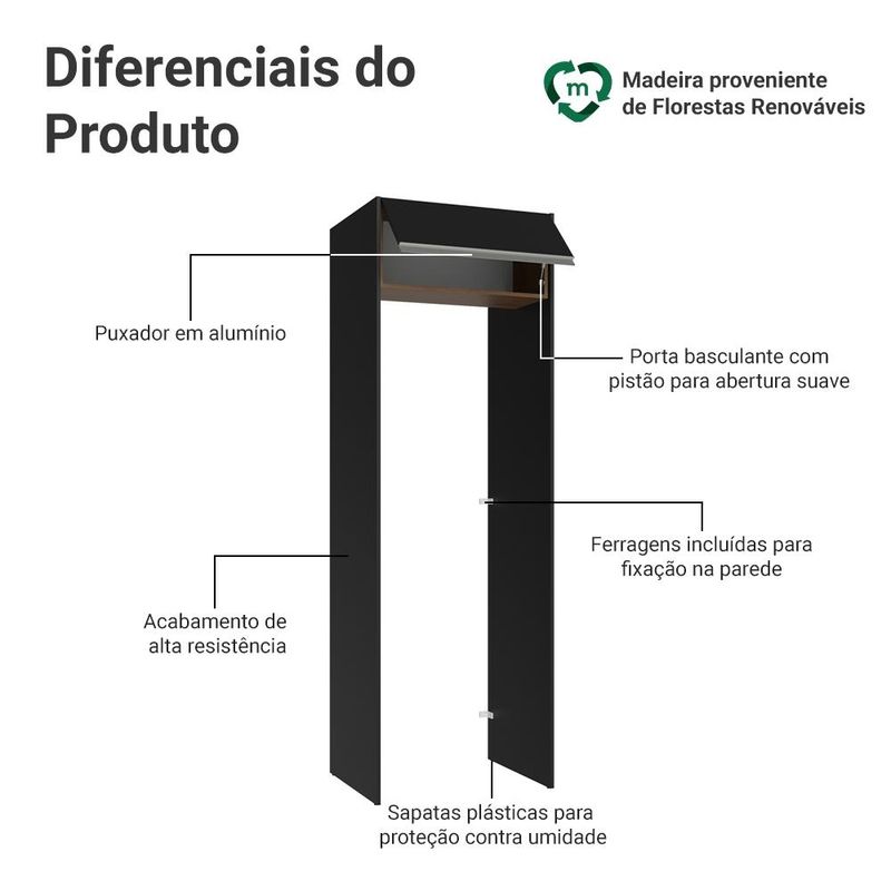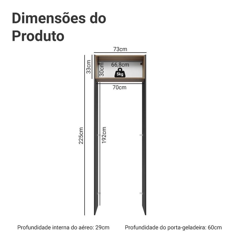 Casa e DecoraçãoMóveisArmário de CozinhaPorta-Geladeira 73 cm 1 Porta Basculante Preto/Rustic/Preto Glamy Madesa