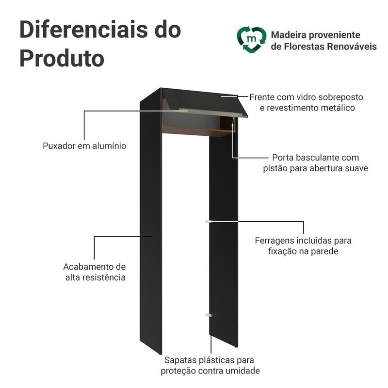Porta-Geladeira 73 cm 1 Porta Basculante Preto/Rustic/Preto Lux Madesa REF: 7891760116239