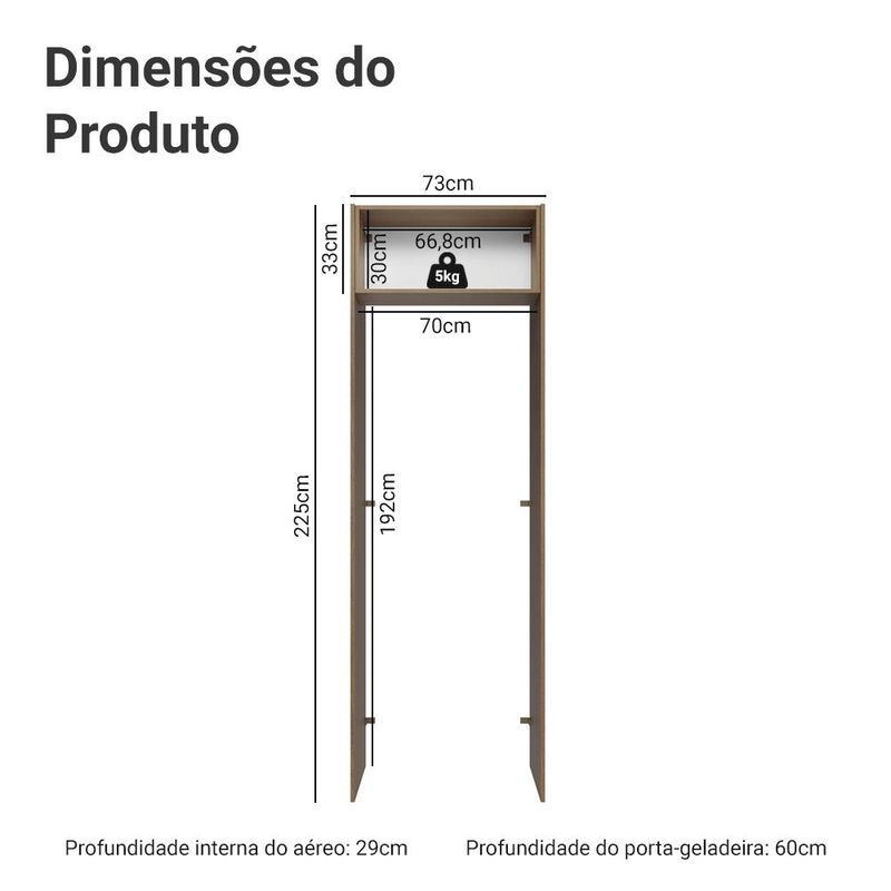 Casa e DecoraçãoMóveisArmário de CozinhaPorta-Geladeira 73 cm 1 Porta Basculante Rustic/Branco Vik Madesa