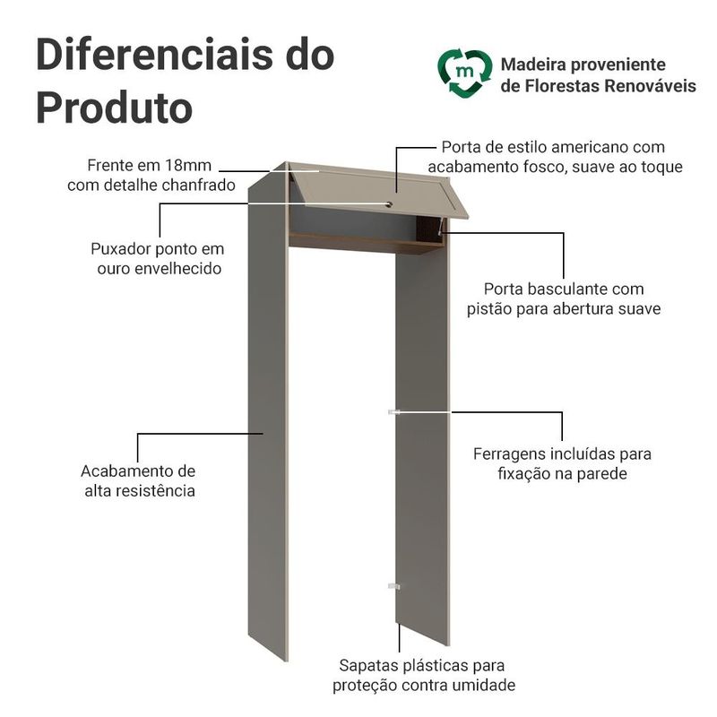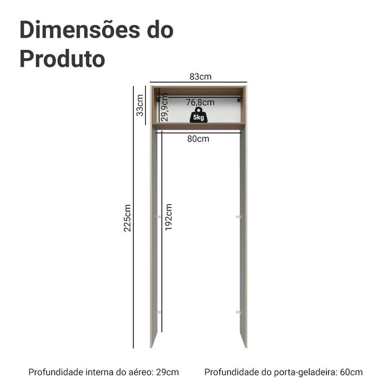Casa e DecoraçãoMóveisArmário de CozinhaPorta-Geladeira 83 cm 1 Porta Basculante Crema/Rustic/Crema Vik Madesa