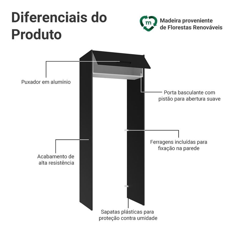 Casa e DecoraçãoMóveisArmário de CozinhaPorta-Geladeira 83 cm 1 Porta Basculante Preto/Branco/Preto Agata Madesa